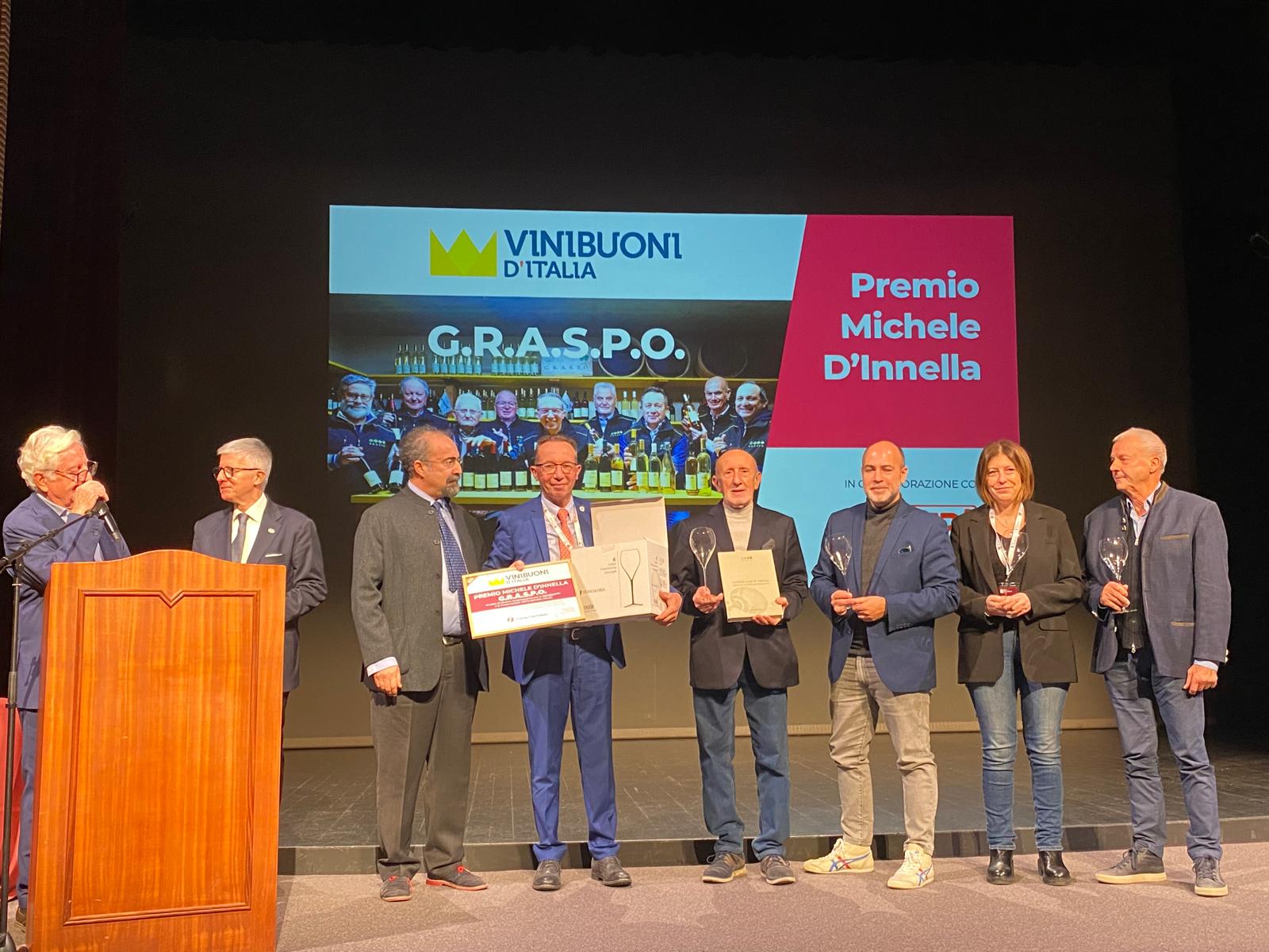 Se l’Italia rappresenta il paese del vino con il maggior numero di vitigni e quindi con la massima espressione di biodiversità viticola, potrebbe sembrare inutile o superfluo continuare a ricercare ulteriori testimonianze di vitigni dispersi nella sua storia hanno dichiarato i curatori della prestigiosa Guida del Touring Vini Buoni D’Italia Mario Busso ed Alessandro Scorsone nel consegnare a GRASPO il prestigioso premio dedicato a Michele D’Innella Intellettuale raffinato, che in qualità di direttore editoriale, nel 2007 introdusse la guida Vinibuoni d’Italia in Touring perchè capì le potenzialità del progetto che mirava a valorizzare il vero patrimonio vitivinicolo italiano basato su vitigni autoctoni rari e unici.