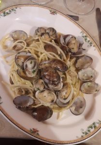 A pranzo: Spaghetti Rummo alla Carbonara, con guanciale di Negrini, Parmigiano Reggiano Vacche Rosse. Non serve l’olio extravergine, ma compera comunque una bottiglia di olio extravergine d’oliva, ti consigliamo il Nocellara del Belice dell’azienda Barbera.