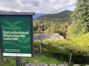 Quando si parla  di monumenti viventi in Alto Adige infatti, non si può prescindere dalla vecchia vigna di oltre 300 anni che si trova  a Castel Katzenzungen a Tesimo – Prissiano. Siamo su una delle più suggestive terrazze panoramiche della provincia ad oltre 600 metri di altitudine circondati da boschi, castagneti e frutteti, tra castelli, antiche chiese e vecchi masi.