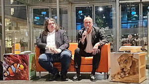 Il presidente Slow Food del Trentino Alto Adige Tommaso Martini sul palco con Carlo Bogliotti (foto Matteo Piazza)
