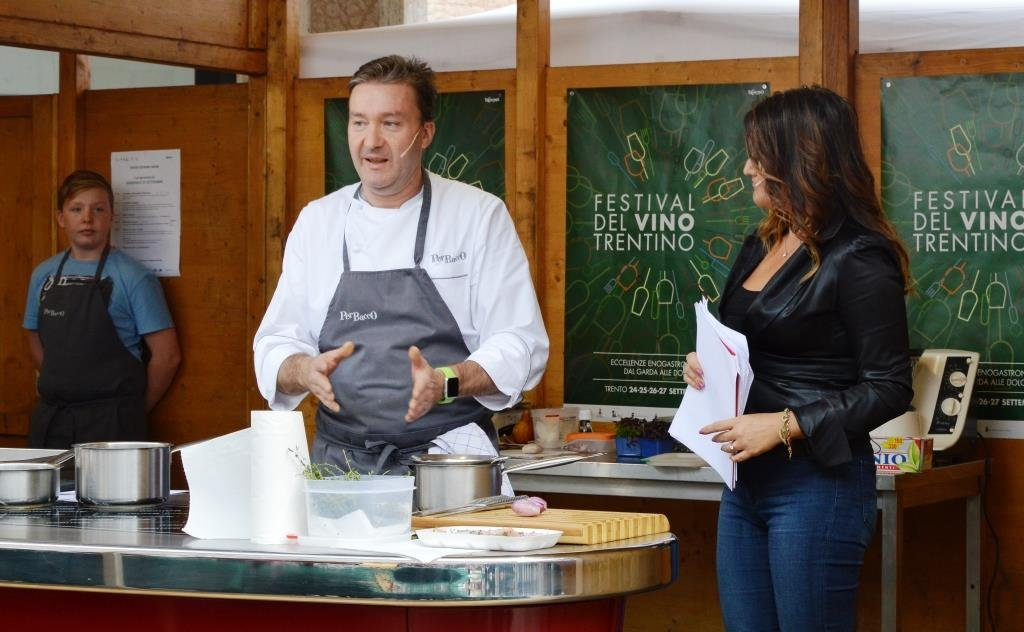 Rapporti di amicizia – dicevo poc’anzi – importantissimi in un settore spesso litigioso e che guarda, spesso anche in Trentino, solo al proprio orticello. Ne è un esempio l’episodio cui ho assistito nel caveau della Cittadella del Vino di Mezzocorona in occasione della cena di gala (una bontà il risotto al Teroldego) che Paolo Dolzan, chef del Ristorante Perbacco e del Bistrot al Corso di Mezzolombardo ha proposto agli ospiti e alle delegazioni nazionali e internazionali.
