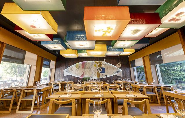 Un ristorante ideato e creato fin nei minimi dettagli da questo poliedrico, istrionico e visionario artista che, dopo le esperienze maturate in Costa Azzurra negli anni Settanta del secolo scorso, dove conosce e frequenta Pablo Picasso, Marc Chagall, Fernand Léger, Le Corbusier, realizza con l’estro creativo dei grandi artisti quello che nelle intenzioni doveva essere un «divertissment» e che, grazie alla sua genialità, è diventato una vera e propria opera d’arte.