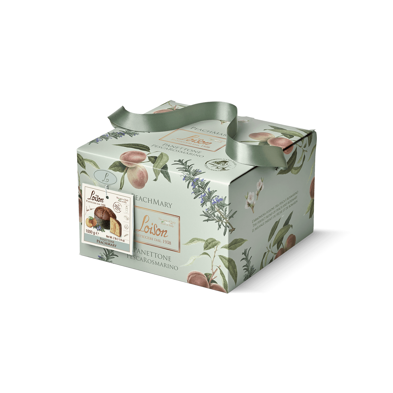 Il Panettone PeachMary® è disponibile in tre formati: 600 grammi, perfetto per un pensiero raffinato; 750 grammi, la versione che mette tutti d’accordo; 1 chilogrammo, ideale per i più golosi o come dono importante.