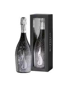 La bottiglia Black Stardust, ideata e disegnata da Monica Lisetto, responsabile Immagine dell’azienda Bottega, è tempestata di cristalli neri. I 3.000 pezzi vengono posizionati a mano per dare un effetto polvere di stelle. La finitura total black è stata ulteriormente impreziosita dall’etichetta e dalla capsula glitterate.