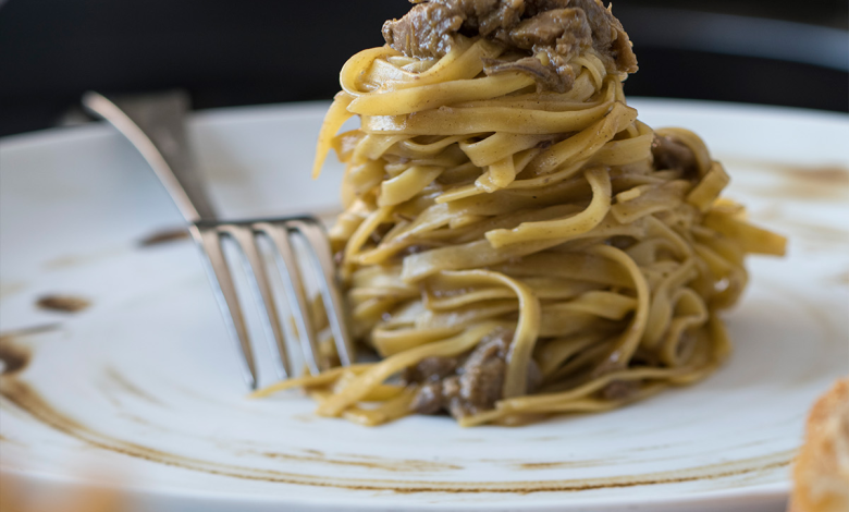Taglierini con ragù di faraona, fagiano e finferli con Barbanico IGT Vallagarina 2020