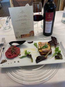 Peccaminoso il dessert: fresco di Castagne con cuore di more su crema di cachi e caramella. Piatti abbinati con i vini dell’azienda Cobue: Dolce Colle, 2022 Marzemino in purezza, fresco, fruttato piacevole al palato ed il rosso Poggio di pronta beva, sapore sapido, fine, fruttato con interessanti speziature. Info: www.ristosanzeno.it
